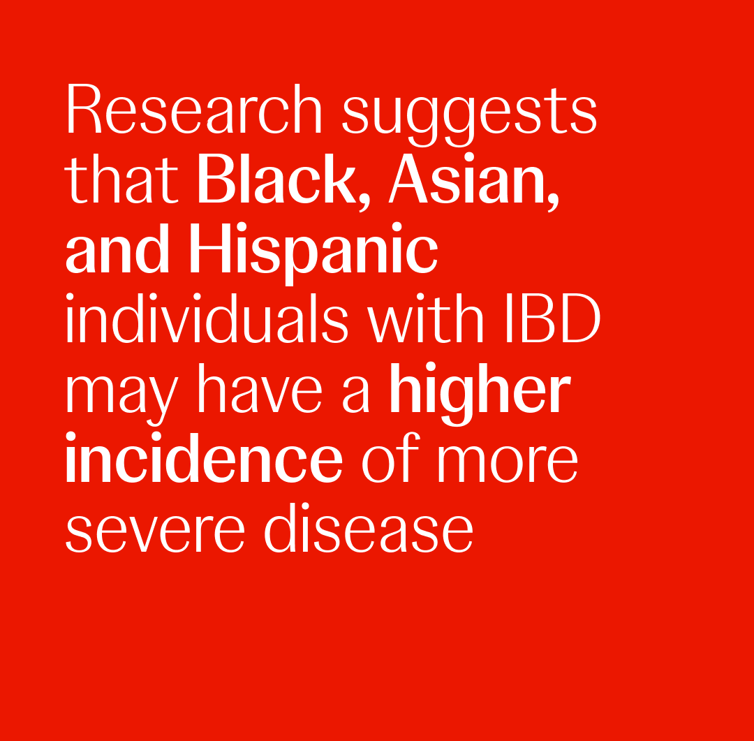 Research also suggests that Black, Asian, and Hispanic individuals with IBD may have a higher incidence of more severe disease.48