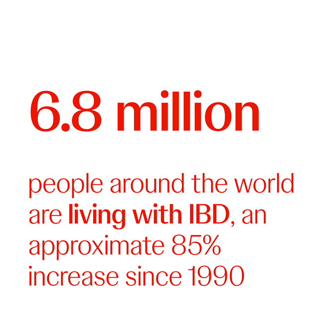 6.8 million people around the world are living with IBD, an approximate 85% increase since 1990.11 In the US, the prevalence of IBD is estimated to be between 2.4 and 3.1 million.12