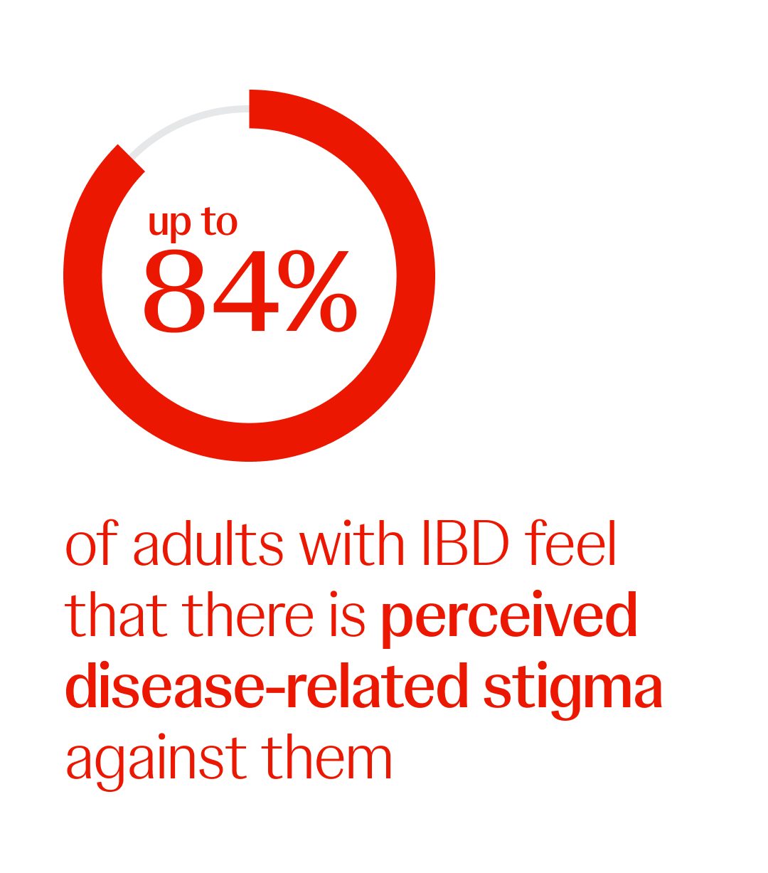 home or socialize comfortably and be fully present at work.5 Up to 84% of adults with IBD feel that there is perceived disease-related stigma against them, which results in social stereotypes making them seem unreliable or antisocial.6