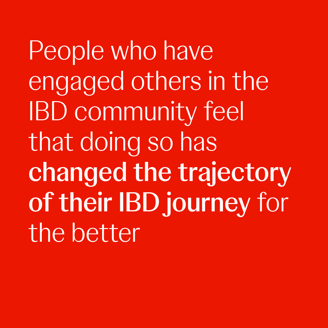 their HCPs. In fact, people who have engaged others in the IBD community feel that doing so has changed the trajectory of their IBD journey for the better, has helped improve their quality of life, and helped them better advocate for their care.